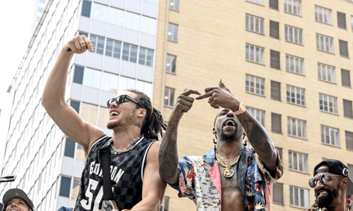 掘金夺冠游行现场画面:约基奇家人遭误伤 马龙抹眼泪+众将赤膊狂欢