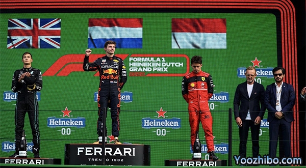 24直播网讯 2022年F1荷兰大奖赛正赛一波三折,最终红牛车队维斯塔潘在最后一次安全车结束后超越汉密尔顿,成功在主场拿到冠军!完成了在赞德沃特主场的两连冠。梅赛德斯车队拉塞尔收获亚军,法拉利车队勒克莱尔拿到季军!